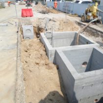 L’impianto di sollevamento sarà ubicato nella parte meridionale dell’abitato di via Vespucci. La stazione di sollevamento sarà composta da due manufatti in calcestruzzo a pianta quadrata interrati di cui uno, destinato all’alloggiamento delle pompe sommergibili, delle dimensioni interne di 200x200cm ed altezza 345 cm, mentre l’altro, delle dimensioni interne di 150×150 cm ed altezza 150