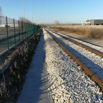Il nuovo binario si innesterà sulla dorsale esistente disposta lungo via Fermi. Il tracciato ferroviario, con un raggio di circa 170m, s’immette in via Jacopo Linussio e si sviluppa parallelamente al tracciato stradale esistente per fermarsi, dopo altre due curve con raggio di 150 m, a circa 180 m dall’intersezione con la provinciale SP 80. Il tratto terminale previsto nel definitivo termina a circa 50 metri dall’asse della S.P. 80 con un’aiuola spartitraffico.