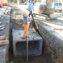 I lavori previsti su diversi collettori dislocati all’interno della frazione di San Giorgio al Tagliamento, hanno permesso di evitare problematiche idrauliche durante eventi di piena. Tra le varie opere si evidenziano le ricalibrature della rete dei canali esistenti anche tramite la posa di pali in legno per il sostegno delle scarpate e la realizzazione di nuove condotte fognarie tramite tubazioni scatolari e circolari in cemento armato.