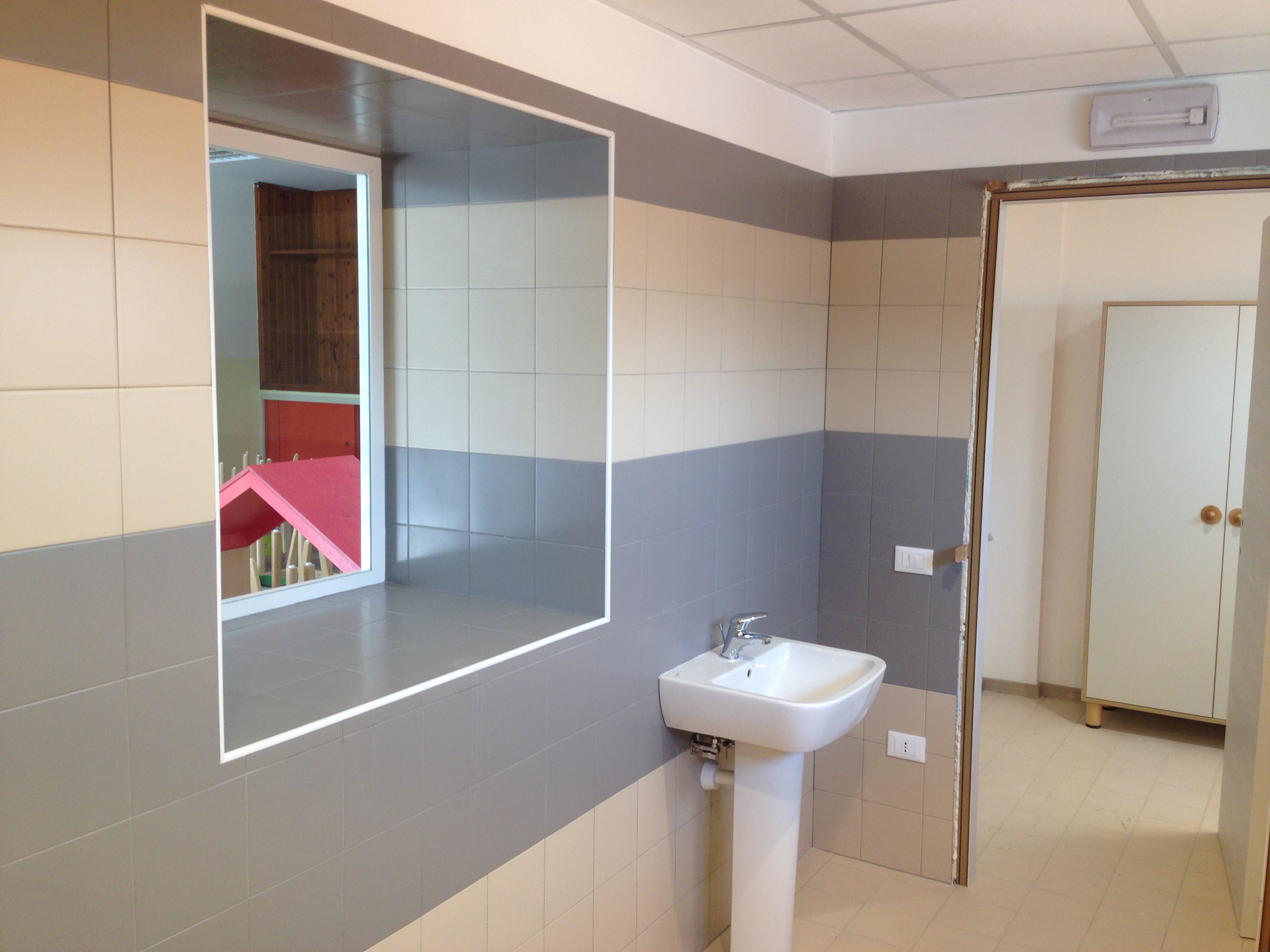 Le attuali 4 aule in uso alla scuola elementare verranno convertite in 3 aule per la scuola prima infanzia con relative aree spogliatoio, blocco servizi e dormitorio. Inoltre è prevista la realizzazione di un nuovo corpo servizi destinato interamente alla scuola per la prima infanzia.