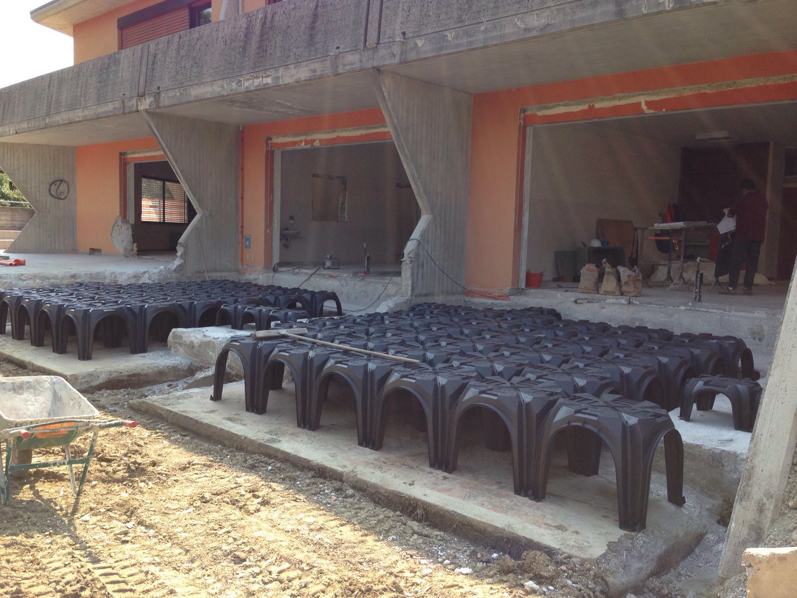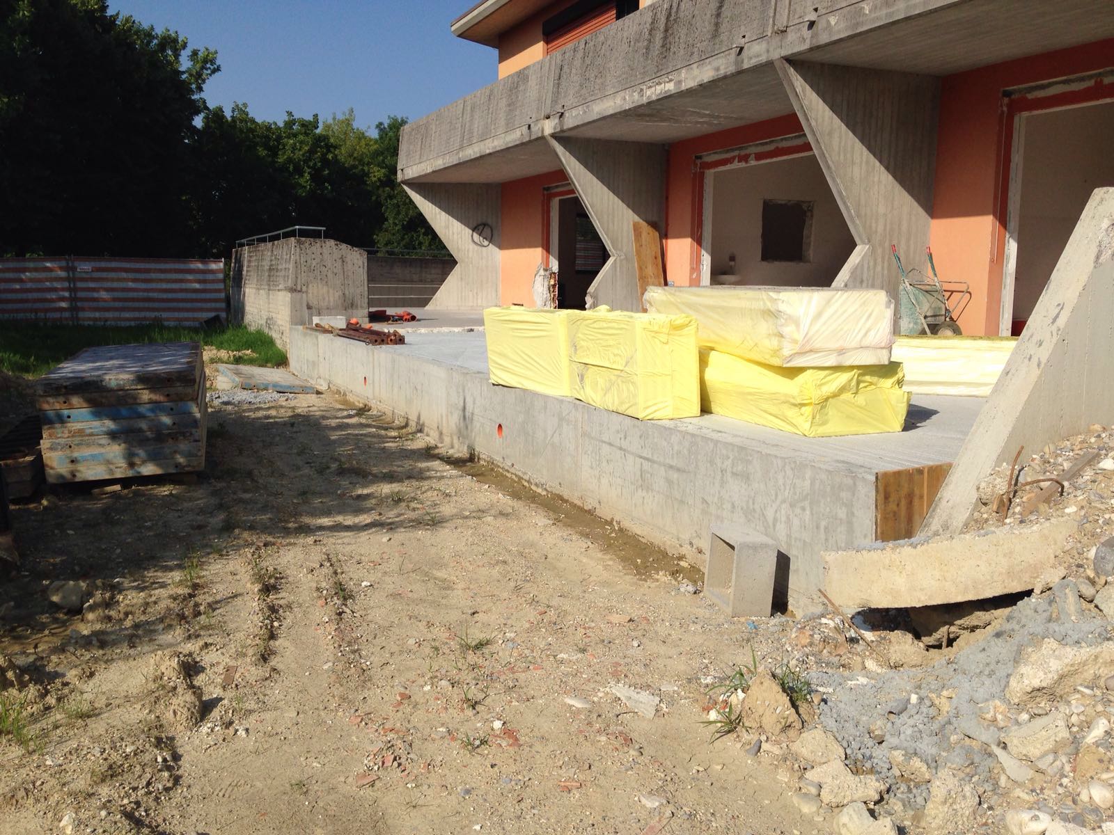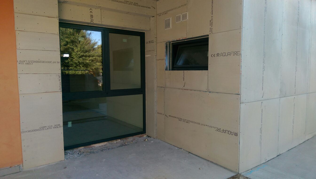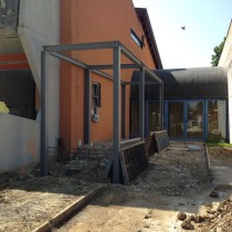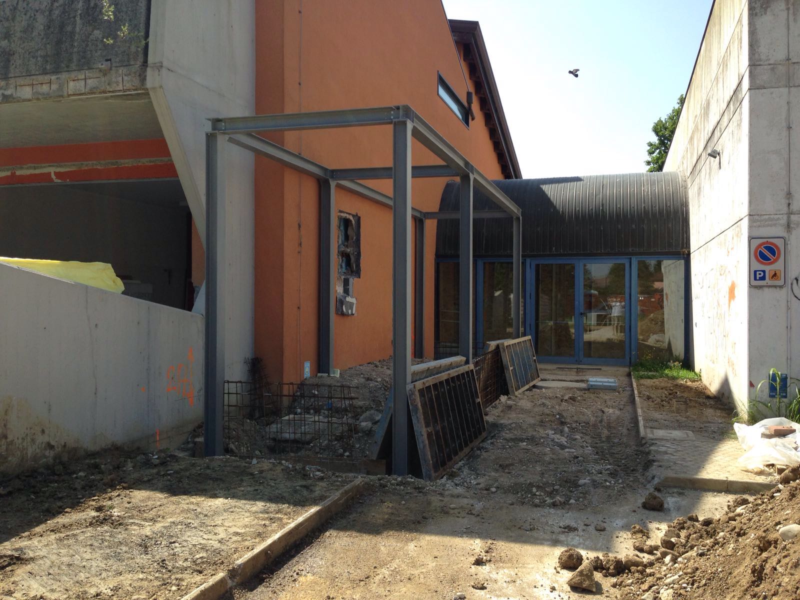 Le opere esterne prevedono la modifica dell’accesso esistente con demolizione e taglio controllato delle strutture in c.a., realizzazione nuove pavimentazione e delimitazioni con recinzioni.
