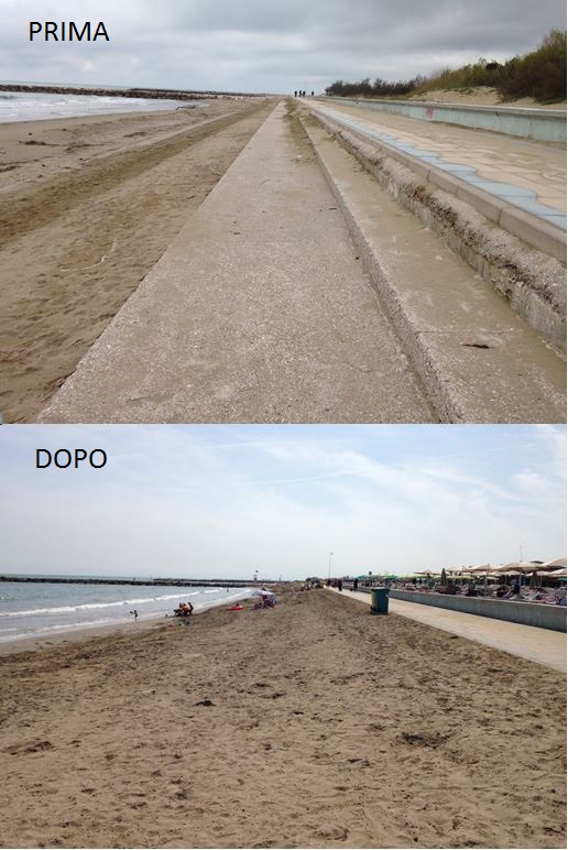 I primi due interventi verranno eseguiti a settembre/ottobre 2016 mentre il ripascimento è avvenuto immediatamente prima l’inizio della stagione estiva in modo da evitare ulteriori erosioni del tratto interessato.