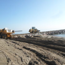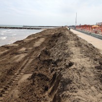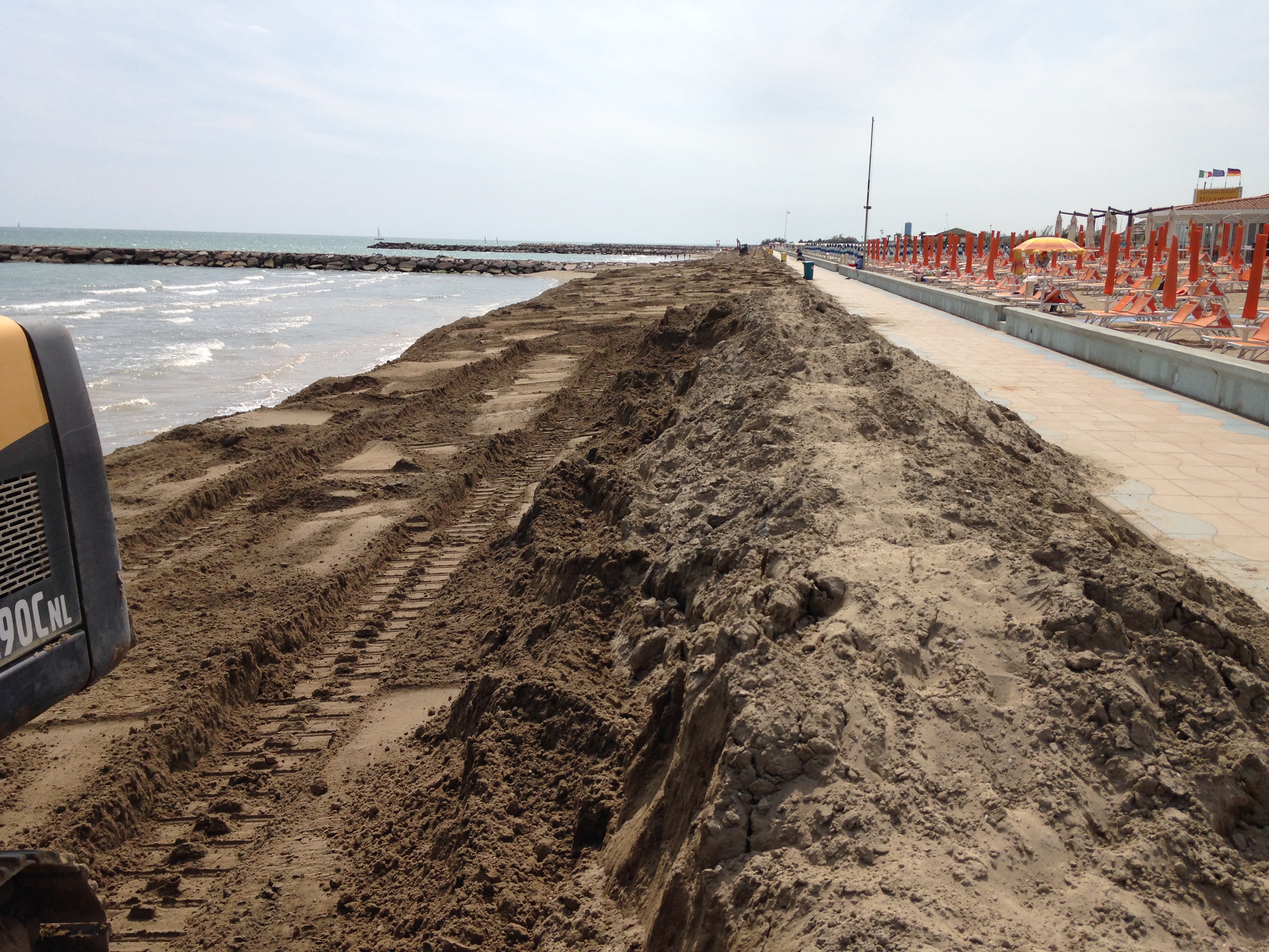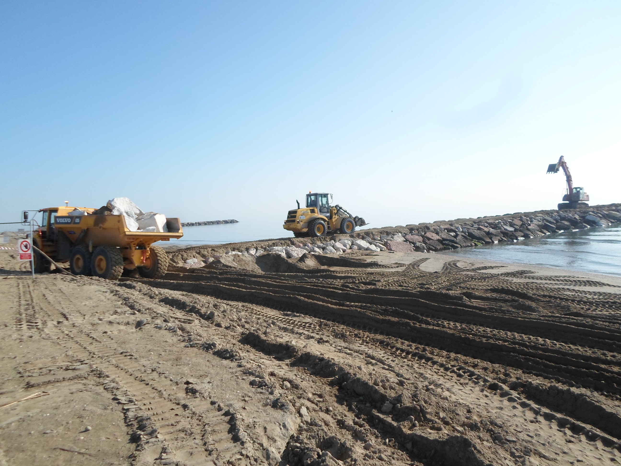 - ripascimento di sabbia per un quantitativo di circa 10.000 mc con asporto dello stesso tra i pennelli in pietrame e il trasporto/stesa lungo la fascia costiera.