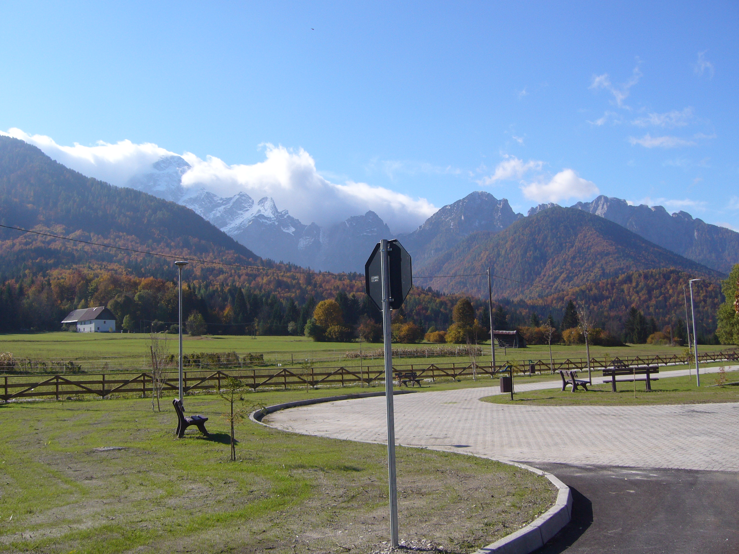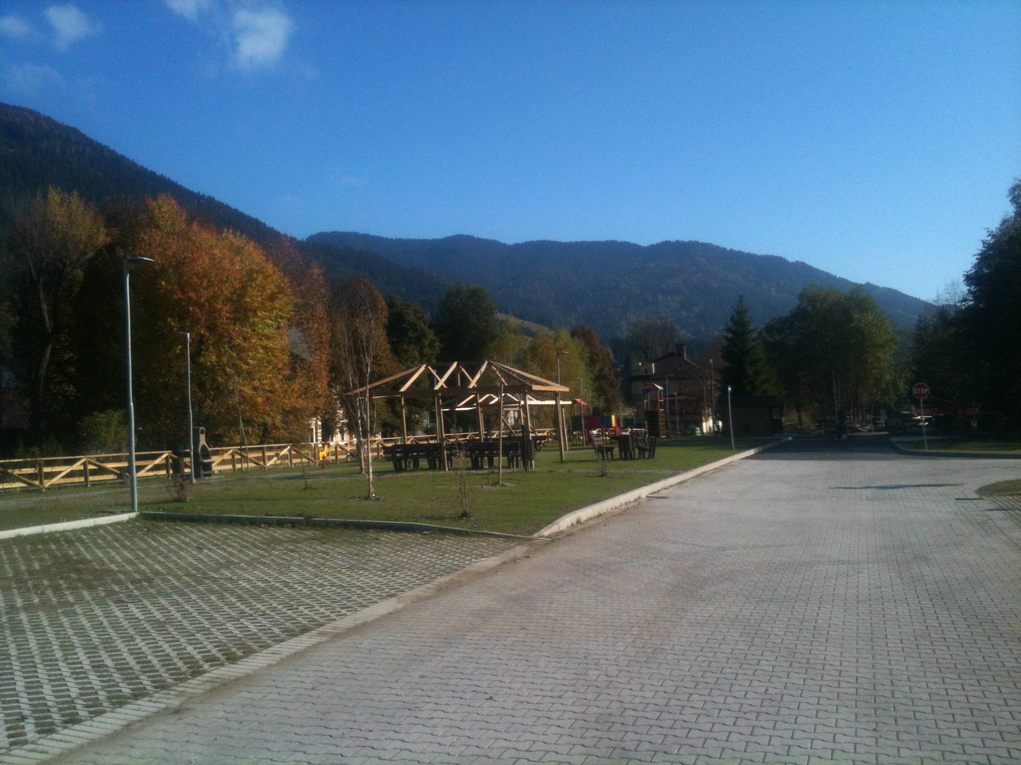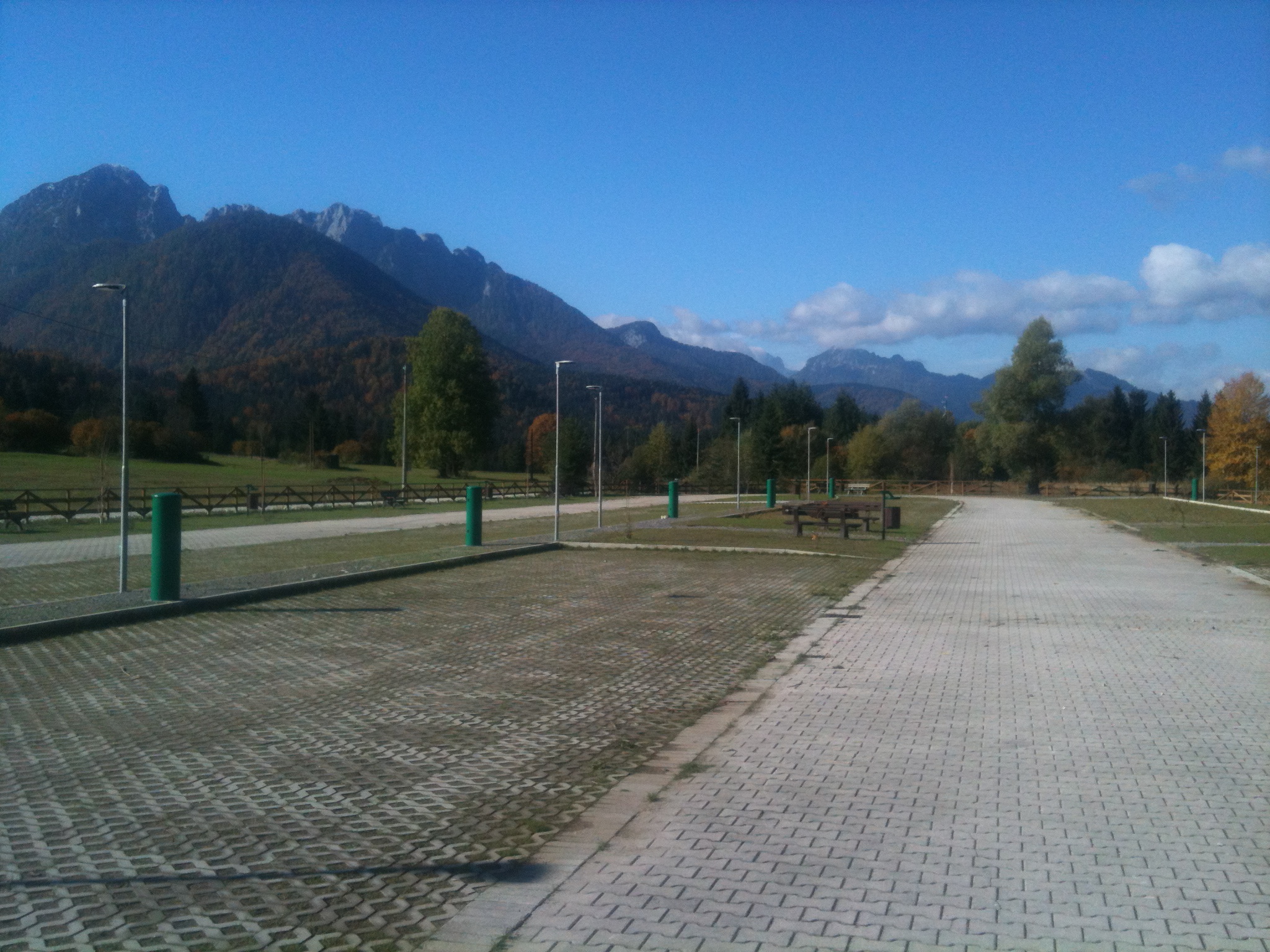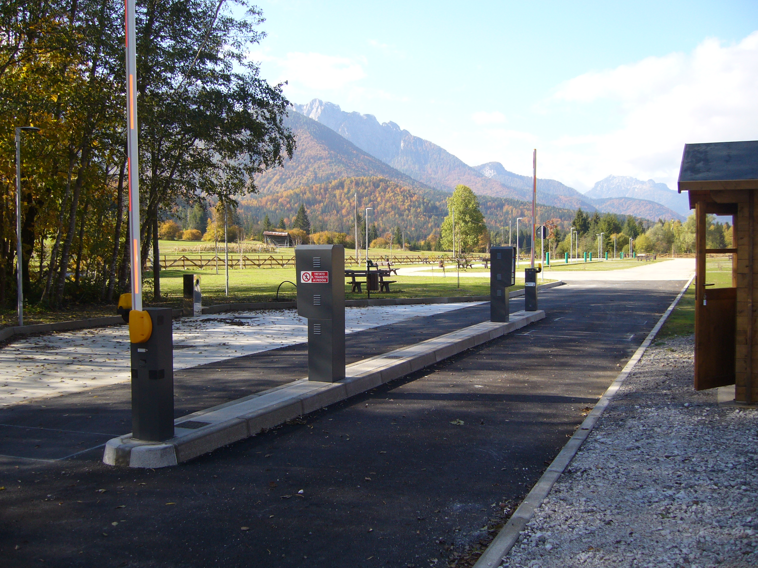 L’intervento eseguito nell’intera superficie occupata dal parcheggio esistente, è stata riqualificata sistemando i parcheggi, creando nuove aree verdi attrezzate con elementi di arredo urbano e di gioco e anche con la messa a dimora di nuova vegetazione. L’intervento si è completato con il ripristino e nuova installazione dei parapetti in legno sulla pista ciclabile Tarvisio – Confine Slovenia.