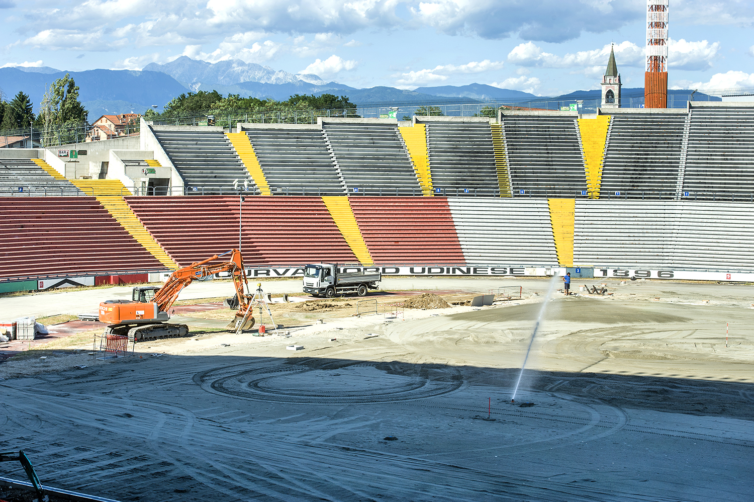Gli interventi di ristrutturazione del 1° lotto funzionale eseguiti presso lo stadio Friuli riguardavano principalmente la realizzazione del nuovo campo di gioco previo spostamento del vecchio, comprese le nuove panchine giocatori e quarto uomo. Opere di completamento la sistemazione delle recinzioni, seggiolini e illuminazione.