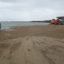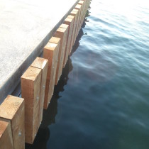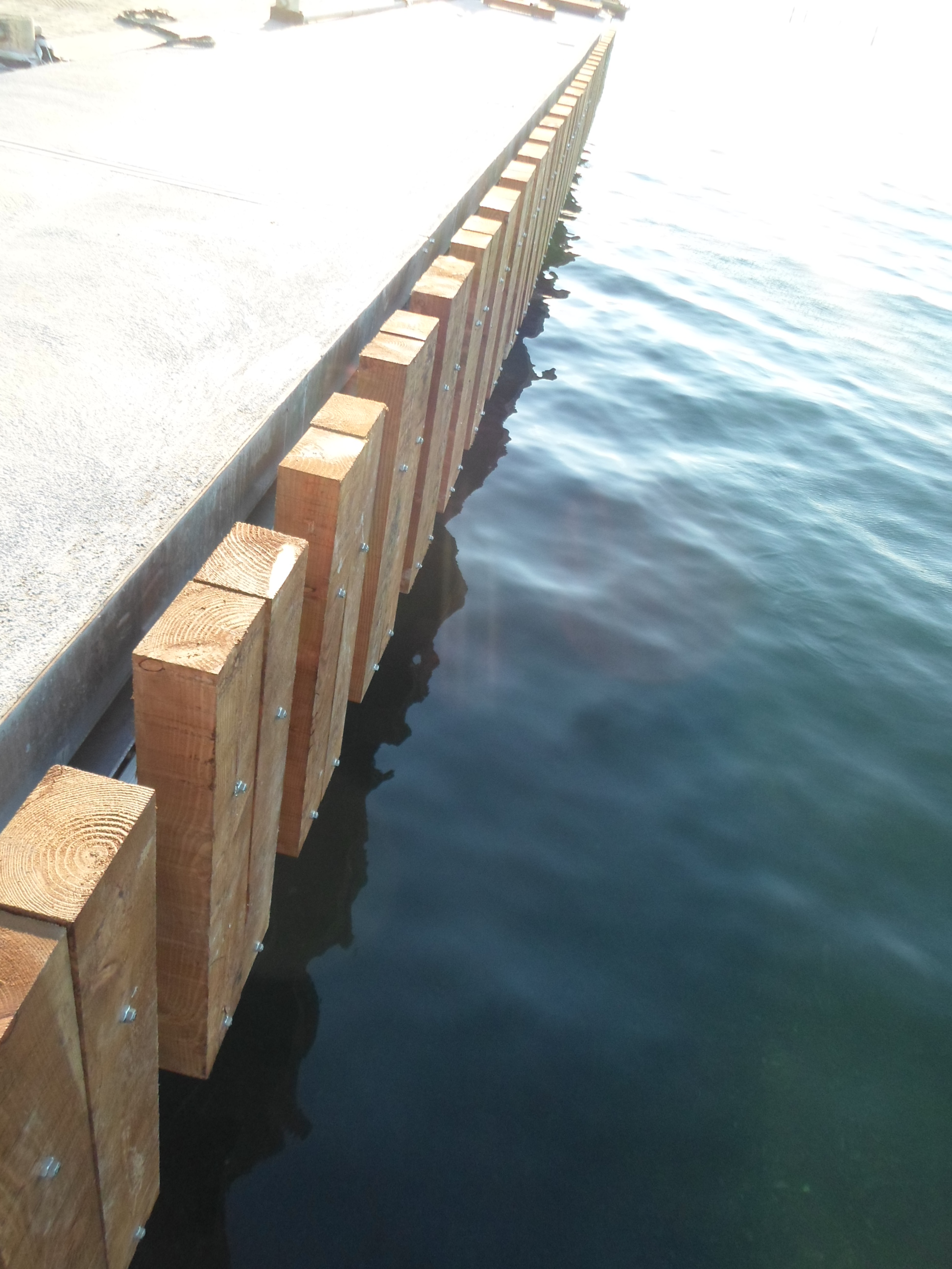 Nella zona della banchina esistente ovest in calcestruzzo armato la riqualificazione della linea di costa sarà eseguita mediante strutture metalliche (mensole), fissate alla banchina stessa mediante micropali sulle quali sarà poggiato un impalcato di larghezza variabile da 50 a 200 cm in lamiera grecata con getto in cls collaborante. Anche in questo caso sono previste travi orizzontali in acciaio di supporto della schermatura in legno.