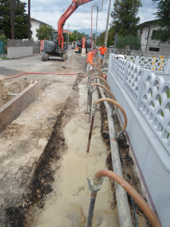 Le opere di progetto riguardano la costruzione della rete di condotte per sole acque nere a servizio di via Vespucci e via Colombo. Funzioneranno a gravità e confluiranno in un impianto di sollevamento, posto all’estremità meridionale di via Vespucci. Da qui per mezzo della condotta in pressione già realizzata, seguendo il tracciato della nuova pista ciclabile, giungeranno all’intersezione con via Maestri del Lavoro, dove verrà realizzato un pozzetto di confluenza per raccogliere le acque dell’esistente condotta che si sviluppa lungo il tratto nord-sud della via.