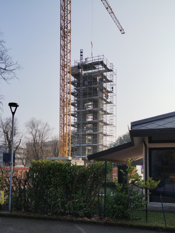 A causa della tipologia del terreno prevalentemente sabbioso, e in seguito a una specifica indagine geologica, il progetto strutturale prevede di fondare la soletta su micropali. La fondazione, con uno spessore di 60 cm, sosterrà i setti verticali che si svilupperanno in altezza fino a 24,5 metri, quota alla quale sarà posizionata la soletta orizzontale della cella campanaria. La struttura sarà poi completata con un`ulteriore soletta di copertura, posta a 27,7 metri.