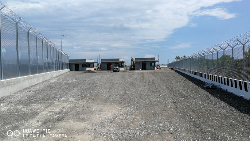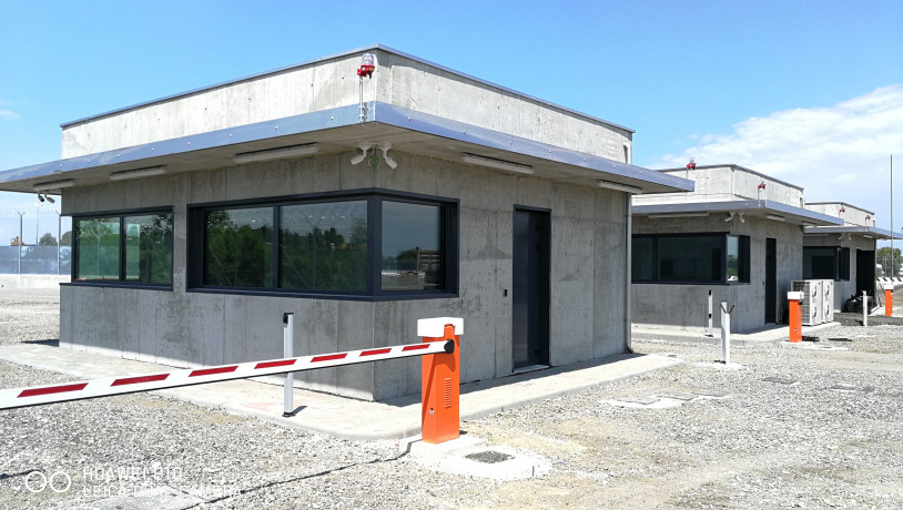 il terzo intervento riguardava la costruzione dei nuovi accessi carrai con la nuova recinzione di tipo doganale e relativi cancelli di chiusura; la parte edile prevedeva la costruzione di 3 varchi doganali di ingresso e 1 di uscita più una cabina elettrica; tali interventi sono completati con gli impianti elettrici e meccanici