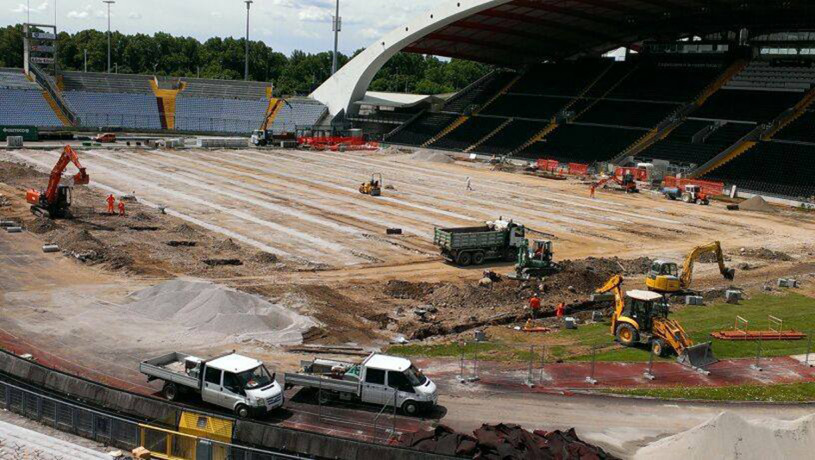Gli interventi di ristrutturazione del 1° lotto funzionale eseguiti presso lo stadio Friuli riguardavano principalmente la realizzazione del nuovo campo di gioco previo spostamento del vecchio, comprese le nuove panchine giocatori e quarto uomo. Opere di completamento la sistemazione delle recinzioni, seggiolini e illuminazione.