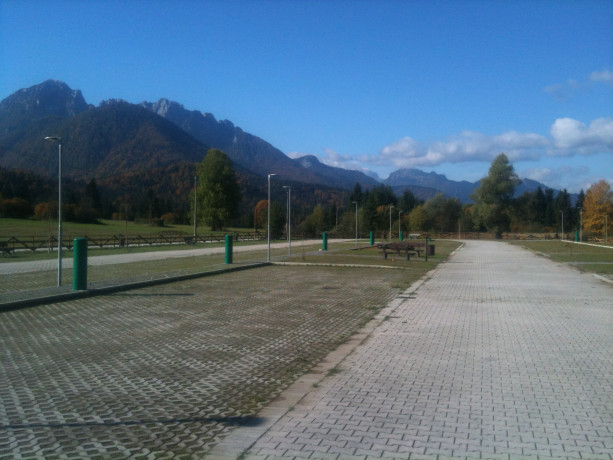 L’intervento eseguito nell’intera superficie occupata dal parcheggio esistente, è stata riqualificata sistemando i parcheggi, creando nuove aree verdi attrezzate con elementi di arredo urbano e di gioco e anche con la messa a dimora di nuova vegetazione. L’intervento si è completato con il ripristino e nuova installazione dei parapetti in legno sulla pista ciclabile Tarvisio – Confine Slovenia.